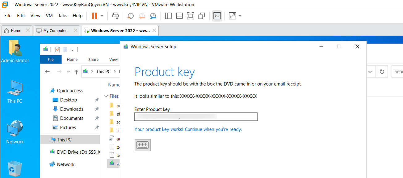 Bạn đợi 1 chút tới bước nhập key bản quyền Windows Server 2022 Standard vào và nhấn Next .